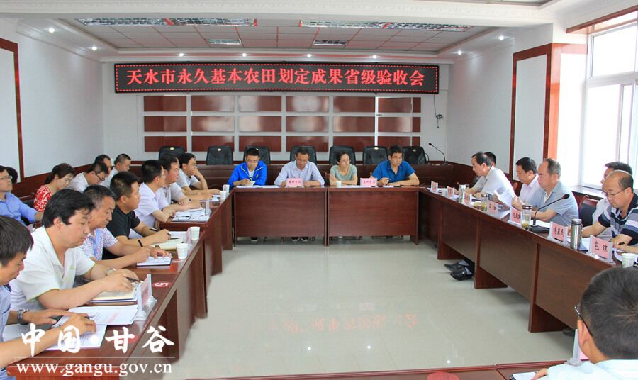 6月23日,全市永久基本农田划定成果省级验收会在甘谷召开,省国土资源厅耕保处副处长陈朝新出席会议并讲话;市国土资源局副局长王虹、副县长马福胜及各县区国土资源局负责人参加会议。 会前,验收组一行通过实地查看、查阅资料、座谈交流等方式详细了解了各县区城市周边永久基本农田划定地块及永久基本农田保护情况。会上,验收组反馈了永久基本农田划定成果检查验收情况,并就下段工作提出了指导性意见和建议。