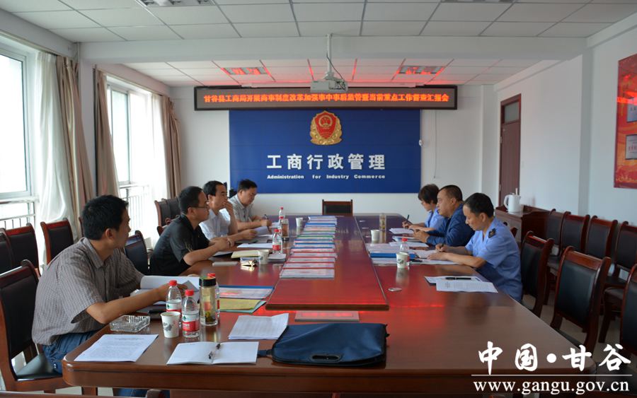 6月19日,省工商行政管理局企业监督管理处处长毛赟、信息处处长陈绛明,带领工作组深入甘谷县工商局督查商事制度改革加强事中事后监管和当前重点工作开展情况。