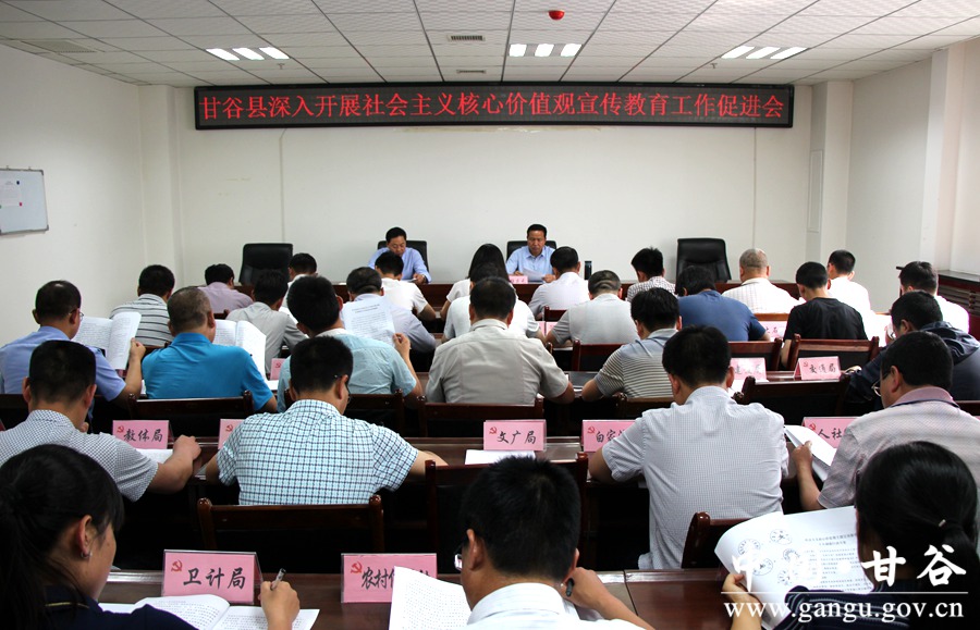 6月19日,甘谷县召开深入开展社会主义核心价值观宣传教育工作促进会。县委常委、宣传部长张庆元出席会议并讲话;各乡镇及县直各部门、各单位分管精神文明工作负责人参加会议。 会上,县委宣传部有关负责人宣读了《关于转发中共甘肃省委宣传部等十一部门关于印发< 社会主义核心价值观主题宣传教育十大创建行动方案>的通知》文件精神。