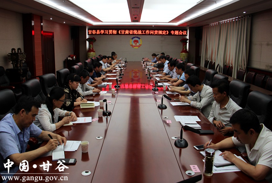 6月12日,甘谷县召开学习贯彻《甘肃省统一战线工作问责规定》专题会议。县委常委、统战部长王刚出席会议。县委组织部、宣传部、团县委、县妇联、县科协、教体局、工信局、民政局、司法局等相关部门单位负责人参加会议。 会上,王刚作了讲话;与会人员逐条逐句学习了《中国共产党甘肃省统一战线工作问责规定》,总则、问责情形、问责方式和程序等具体内容,重点对宗教工作中出现的问题结合我县实际进行对比检查。 会议强调,要充分认识《问责规定》颁布的重大意义,贯彻落实好《问责规定》,唤醒责任意识,激励鞭策,更好的推进当前工作;要充分发挥全县民主党派、工商联和无党派人士的作用,提升多党合作效能;要落实好组织领导与职责,形成齐抓共管的大统战工作格局;要充分发挥统一战线的优势作用,引导全县统一战线切实围绕我县工作目标积极建言献策,促进社会和谐稳定,为推进全县决胜小康社会建设贡献智慧和力量。