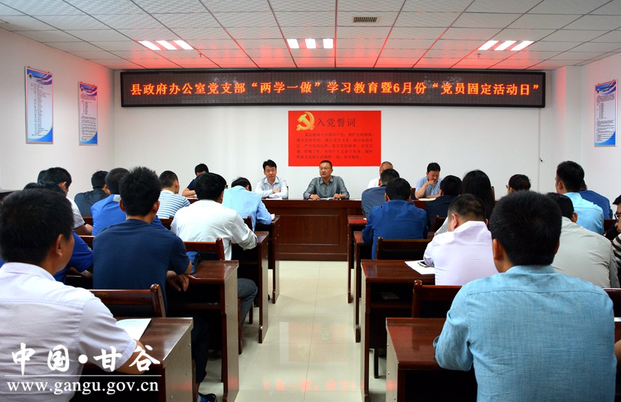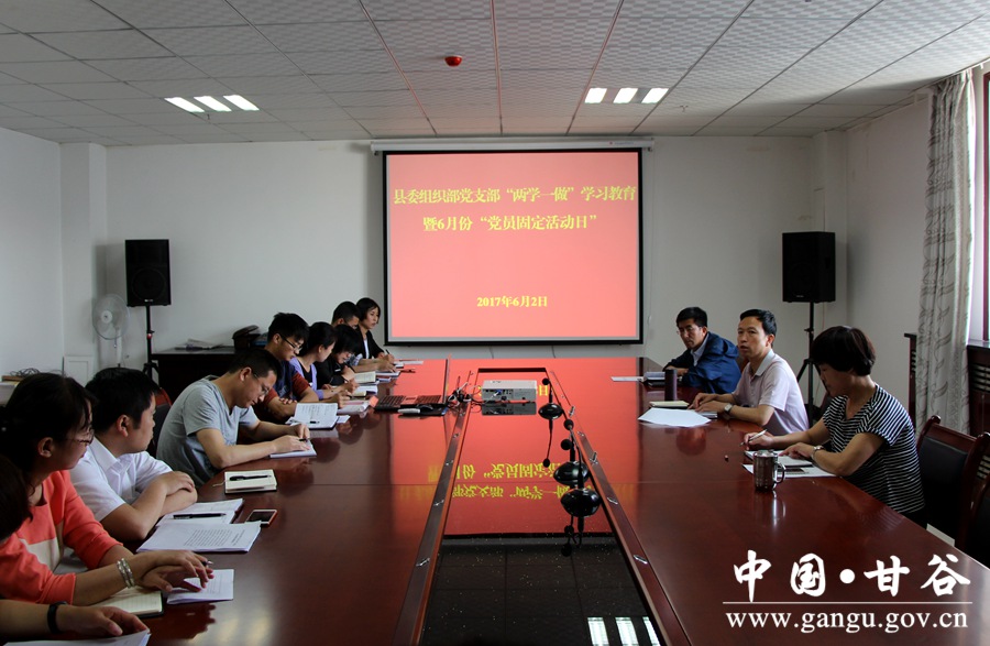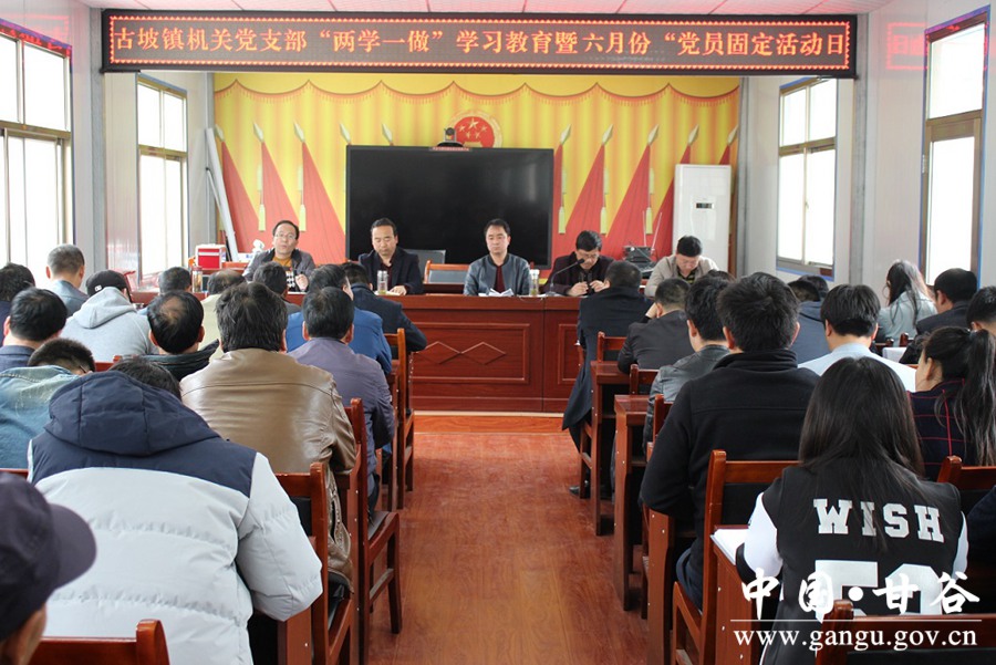 6月2日,是今年“两学一做”学习教育第6个“党员固定活动日”,甘谷县各级党组织按照县上统一部署,组织党员干部围绕《习近平总书记对推进“两学一做”学习教育常态化制度化的重要指示》《习近平总书记关于基层党建工作重要讲话和指示精神》、省委书记林铎在全省推进“两学一做”学习教育常态化制度化工作会议上的讲话、省第十三次党代会精神及黑龙江省牡丹江市抓项目促发展工作经验等学习内容,广泛开展了形式多样、内涵丰富的“党员固定活动日”主题活动。