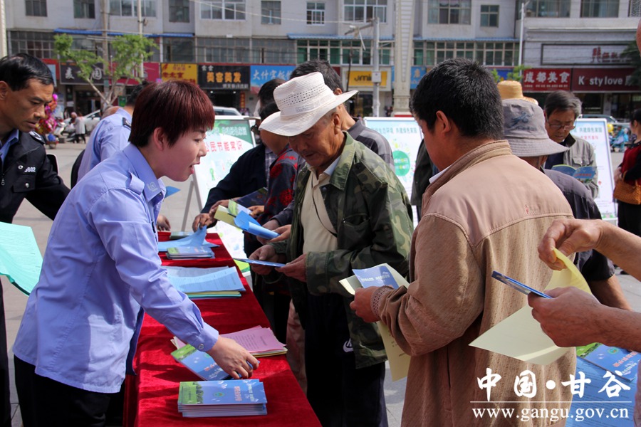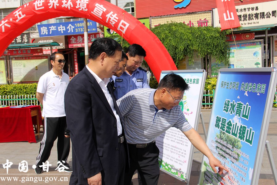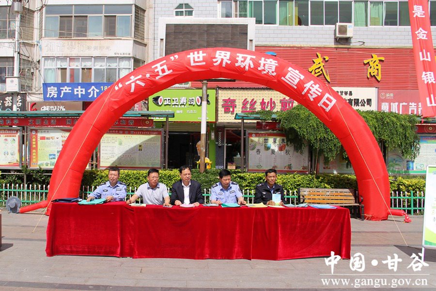 6月5日,甘谷县环保局在大十字广场开展“六·五”世界环境日宣传活动。县委常委、副县长王志高参加活动。