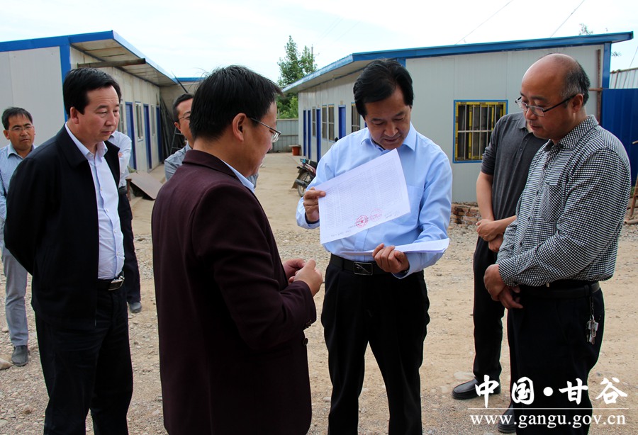 (在谢家湾乡易地扶贫搬迁项目现场检查)