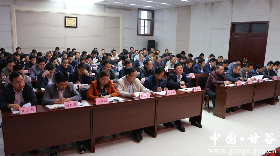 5月22日,甘谷县召开县政府2017年廉政工作会议,贯彻落实习近平总书记在十八届中央纪委七次全会上的重要讲话精神及国务院、省政府第五次廉政工作会议和七届市政府第一次廉政工作会议精神,全面总结2016年政府系统廉政工作,安排部署2017年重点工作任务。 县委副书记、县长申君明,县委常委、常务副县长孟晓龙,副县长牛武军、郭中校、郭小鹏、马福胜出席会议。县政府工作部门、挂牌机构、事业单位主要负责人,各乡镇乡(镇)长参加会议;县委办、人大办、政协办以及县委工作部门负责人应邀列席会议。 会上,申君明作了讲话,并代表县政府与部门乡镇签订廉政工作目标管理责任书;县监察局、建设局、教体局、交运局、水务局、大像山镇、新兴镇等部门乡镇主要负责人作了发言。