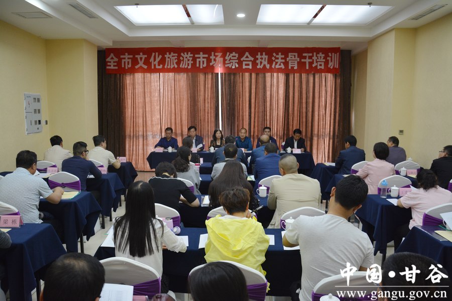 5月17日,全市文化旅游市场综合执法骨干培训班在甘谷县开班。省文化市场稽查队副队长路克新,市文化和旅游局副局长李小敏,县人大常委会副主任王金生,县政协副主席马清平出席开班仪式。市文化和旅游局有关科室负责人、市文化旅游市场综合执法支队全体执法人员和各县区执法骨干人员共计50多人参加培训。 仪式上,路克新、李小敏分别作了讲话,王金生致辞,市文化和旅游局有关负责人就培训工作做了详细安排部署。