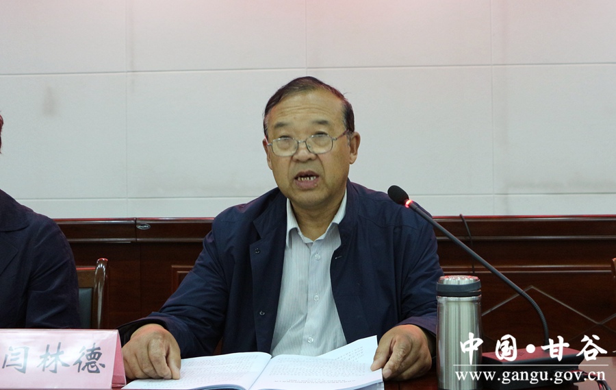 (省第一督导评估组组长、兰州职业技术学院原院长、省政府督学闫林德讲话)
