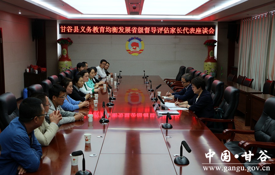 汇报会结束后,督导评估组领导、专家及与会人员参观了甘谷县义务教育均衡发展成果展览;分别组织召开了县人大代表和县政协委员、县政府职能部门及乡镇负责人、校长和教师、家长代表参加的四个座谈会,就政府在推动义务教育均衡发展方面所做的工作、对义务教育均衡工作的总体评价、对甘谷县义务教育均衡发展的意见和建议等进行了座谈交流。同时,督导评估组还详细查阅了全县推进义务教育均衡发展工作档案资料。