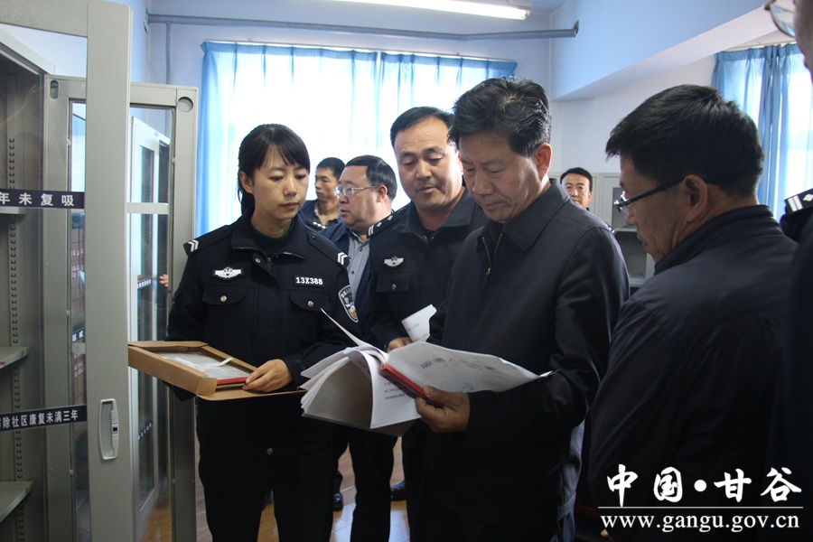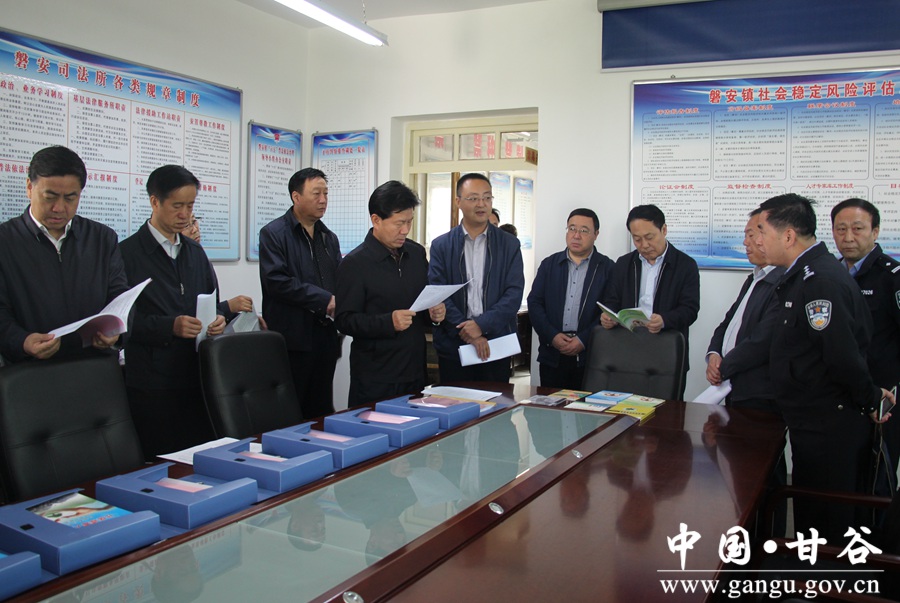 5月9日,市政协主席张明泰,副主席苏定武、郭明兴、逯克宗带领调研组深入甘谷县调研禁毒工作。县政协主席马骥,县委常委、政法委书记冯全敬陪同。 张明泰一行先后来到磐安镇政府、磐安派出所、模范中学等地,通过实地查看、听取汇报、查阅资料、询问交流等方式,详细调研了解了禁毒工作组织机构、宣传教育、社区戒毒与康复等工作开展情况。