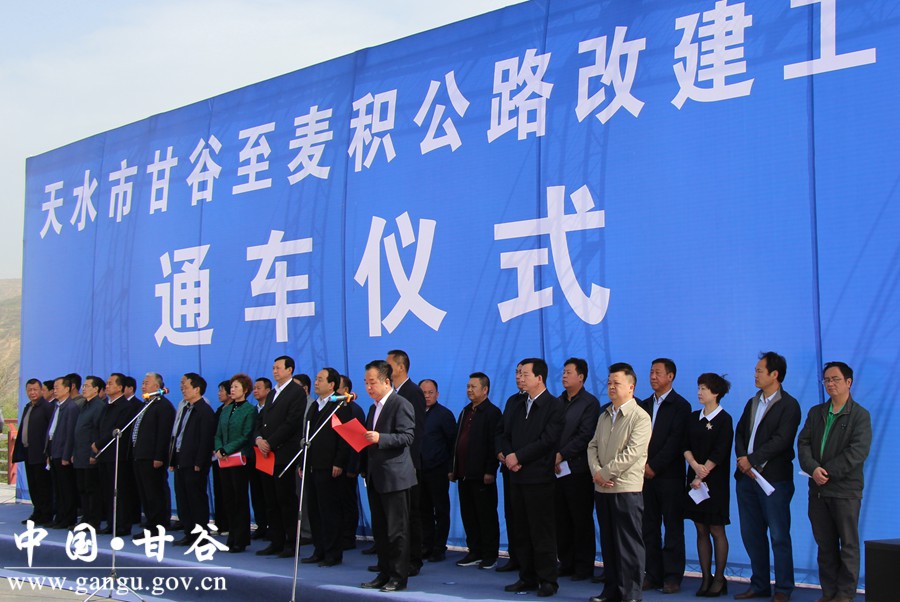 5月4日,天水市举行甘谷至麦积公路改建工程通车仪式。市委常委、常务副市长赵卫东,市委常委、统战部长温利平,市人大常委会副主任安志宏,市政协副主席郭明兴出席仪式。甘谷县委常委、常务副县长孟晓龙,县委常委、统战部长王刚及县直相关部门、沿线乡镇负责人参加通车仪式。