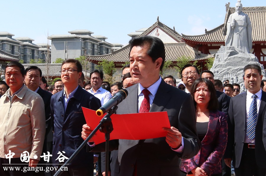 4月28日,甘谷县隆重举行崇文苑、尚武苑竣工典礼暨孔子、石作蜀、姜维圣像揭幕仪式。市委宣传部副部长马立新,市文化旅游局局长仙松涛、副局长杨春晓、李晓敏,市政府研究室主任董小明,甘肃电视台艺术总监高国强;县委书记贾忠慧,县委副书记、县长申君明,县政协主席马骥等县四大组织领导出席仪式。各乡镇、部分县直部门单位干部职工及各界群众代表参加仪式。 仪式上,贾忠慧作了讲话;仙松涛、贾忠慧为孔子、石作蜀圣像进行了揭幕,马立新、申君明为姜维圣像进行了揭幕。