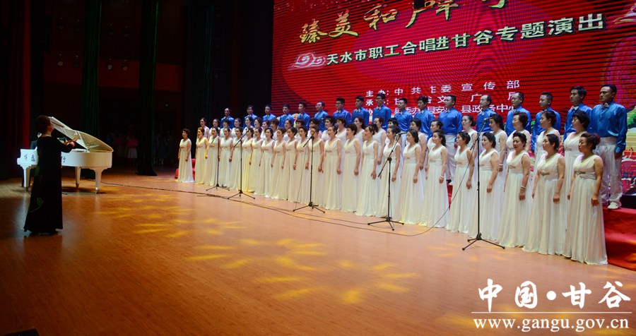 据悉,天水市职工合唱团成立于2001年10月,由来自全市各行各业的近百名音乐爱好者组成。十多年来,合唱团以展现富裕文明和谐新天水取得的辉煌成就,反映全市群众丰富多彩的文化生活和健康向上的精神风貌为己任,传唱优秀歌曲,传播高雅艺术,已成为活跃在天水市文艺舞台上的一支具有较高艺术水准的合唱团。连续十年在全市各类文艺比赛中荣获“最佳艺术奖”“特别奖”“特别展演奖”“一等奖”“特等奖”等奖项。2015年,在参加新加坡皇廷国际文化交流中心举办的第八届“歌韵东方”国际合唱节演出中,天水市职工合唱团携参赛作品《大漠之夜》《花儿变奏曲》在来自世界各国30多个参赛团体中脱颖而出,经初赛、复赛激烈角逐,作为唯一一支中国代表队进入前六强,最终荣获混声合唱银奖。