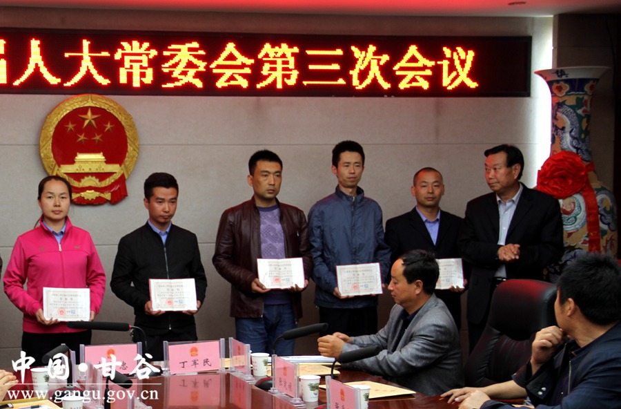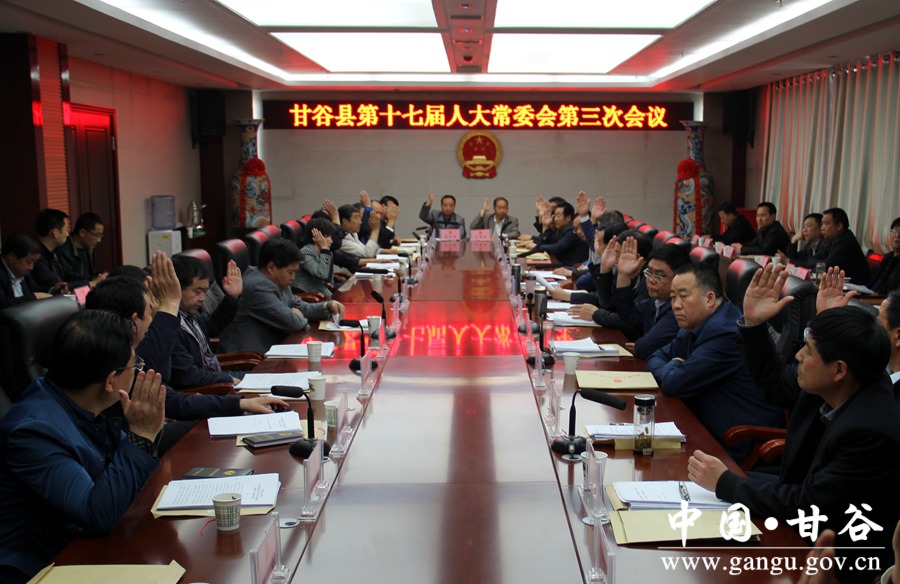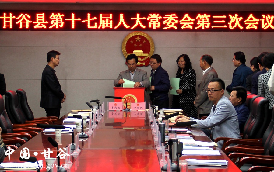 在第二次全体会议上,会议以举手表决的方式表决通过了县人大常委会关于《中华人民共和国职业教育法》贯彻实施情况的审议意见、关于甘谷县2016年法治政府建设工作情况的审议意见;会议还以无记名投票的方式表决通过了人事任免决定。