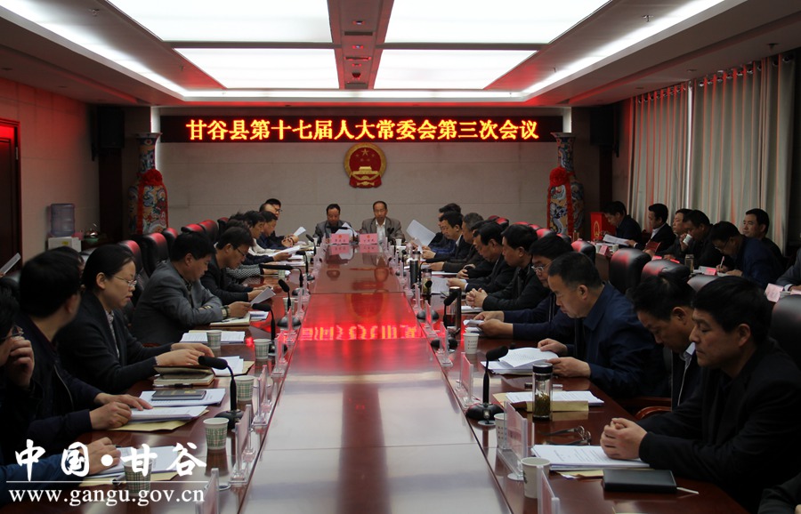 4月26日,甘谷县第十七届人大常委会召开第三次会议。县人大常委会副主任王金生、谢兴明、刘仰贤、刘永仁、李富国、颉明军及常委会组成人员出席会议。副县长马福胜、郭小鹏,县法院副院长,县检察院副检察长,县委组织部、县政府各工作部门有关负责人及大石镇、西坪镇人大主席列席会议。王金生分别主持第一、二次全体会议。 会议应到常委会组成人员32名,实到27名,符合法定人数。