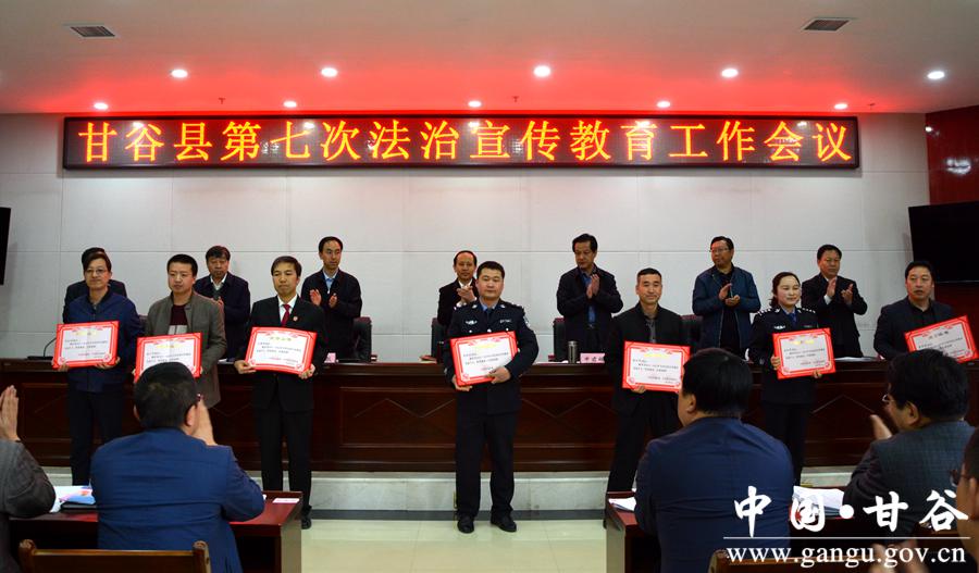 4月21日,甘谷县召开第七次法治宣传教育工作会议,贯彻落实全国和省市法治宣传教育工作会议精神,回顾总结全县“六五”普法工作,安排部署“七五”普法重点任务。 县委书记贾忠慧,县委副书记、县长申君明,县委常委、政法委书记冯全敬,县政协副主席陈旭出席会议。县法院院长,县检察院检察长,县委全面推进依法治县领导小组成员单位负责人,各乡镇党委书记(乡镇长)、分管副乡镇长、司法所长,驻县有关单位负责人,重点企业负责人,各学区和县直各学校校长,及受表彰的先进单位负责人和先进个人,共计190余人参加会议。 会上,贾忠慧、申君明分别作了讲话;冯全敬宣读了表彰决定;县司法局负责人作了工作报告。会议表彰了全县“六五”普法先进集体和先进个人。