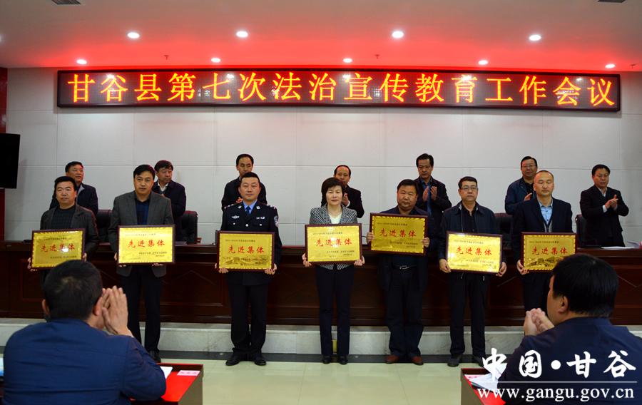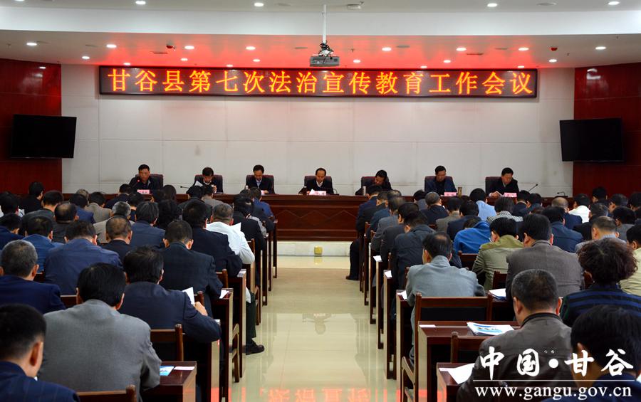 贾忠慧指出,“六五”普法开展以来,全县上下深入贯彻落实中央和省、市普法工作要求,坚持以建设“法治甘谷”为统揽,以“法律七进”为载体,积极创新宣传教育形式,大力开展法治实践活动,较好地完成了“六五”普法各项工作任务,为促进全县经济社会转型发展创造了良好法治环境。今后五年,是全县深入实施“十三五”规划、全面建成小康社会的决胜期,是推进供给侧结构性改革、转变经济发展方式的攻坚期,也是普法宣传教育继往开来、续写华章的关键期。全县普法宣传教育工作的总体要求是:全面贯彻党的十八大和十八届三中、四中、五中、六中全会精神,深入学习贯彻习近平总书记系列重要讲话精神,自觉践行“五大发展理念”,协调推进“四个全面”战略布局,始终遵循“八个并重”总体要求,紧紧围绕全县“十三五”经济社会发展总体目标和县第十四次党代会精神,坚持创新法治宣传教育与推动法治实践相结合、弘扬社会主义法治理念与加强精神文明建设相结合、深入开展法治创建与全面推进依法治理相结合,进一步健全普法教育机制,完善依法治理体系,树立全民法治信仰,增强法治发展后劲,为打赢脱贫攻坚战、全面建成小康社会营造良好法治环境。 贾忠慧强调,法治宣传教育是全面推进依法治县、建设法治甘谷的基础性工作,也是一项需要全社会共同参与的系统工程。深入开展“七五”普法工作、推动全社会树立法治意识,责任重大、任务繁重。各乡镇、各部门、各单位要着眼协调推进“四个全面”战略布局,从坚持和发展中国特色社会主义全局出发,从建设“法治甘谷”工作实践出发,深入学习贯彻落实习近平总书记关于全面依法治国的重要论述,以更大的决心和力度抓好各项任务落实,推动全县法治宣传教育工作迈上新台阶,取得新成效;要同心同德、群策群力,广泛动员和凝聚各方面力量,把法治宣传教育往深里做、往实里做,确保“七五”普法工作取得实实在在的成效;要牢记责任、满怀信心,以更加昂扬的精神状态和责任担当,加快推进法治甘谷建设,为打赢脱贫攻坚战、全面建成小康社会做出新的更大的贡献。