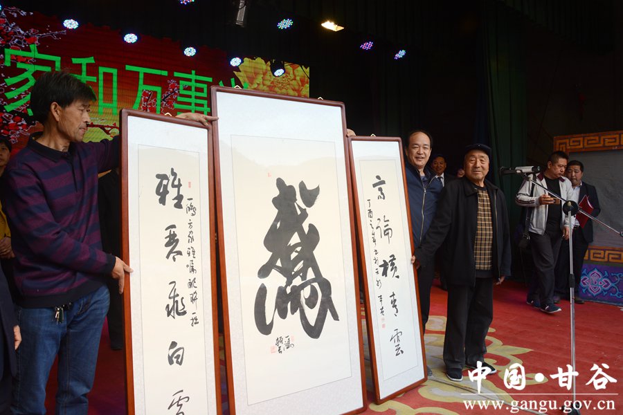 4月16日,甘谷县红十字会西坪镇分会举行爱心助学活动,天水市政府研究室主任董晓明,市文化文物旅游局副局长高宇峰,县委常委、宣传部长张庆元,县委常委、统战部长王刚,县人大常委会副主任王金生,原甘谷县人大常委会主任马化麟,原甘谷县政协副主席王金慎,中央电视台故乡栏目组主编朱岩,中国空军军旅书法家蔺宏泰,中国书法家协会会员、新疆书协理事、甘肃省书法家协会会员鱼新峰,河南商会班子成员、国家一级演员、西北歌王徐永祥,陕西凤翔县观音禅寺主持道辉大师,宁夏宏达煤业有限公司董事长黄彩田,天水电视台天南地北栏目组主任朱晨华出席捐赠仪式,部分西坪籍在外人士及受助学生和家长代表参加仪式。