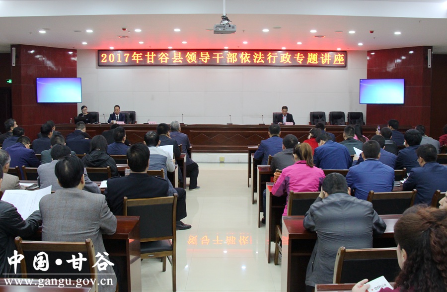 为进一步提升全县行政执法部门依法行政能力,推进法治政府建设,4月14日,甘谷县邀请天水市天秦律师事务所主任王朝晖、副主任纪红作依法行政专题讲座。副县长牛武军、郭小鹏及各乡镇、各部门单位有关负责人共计150多人聆听了专题辅导;讲座由牛武军主持。