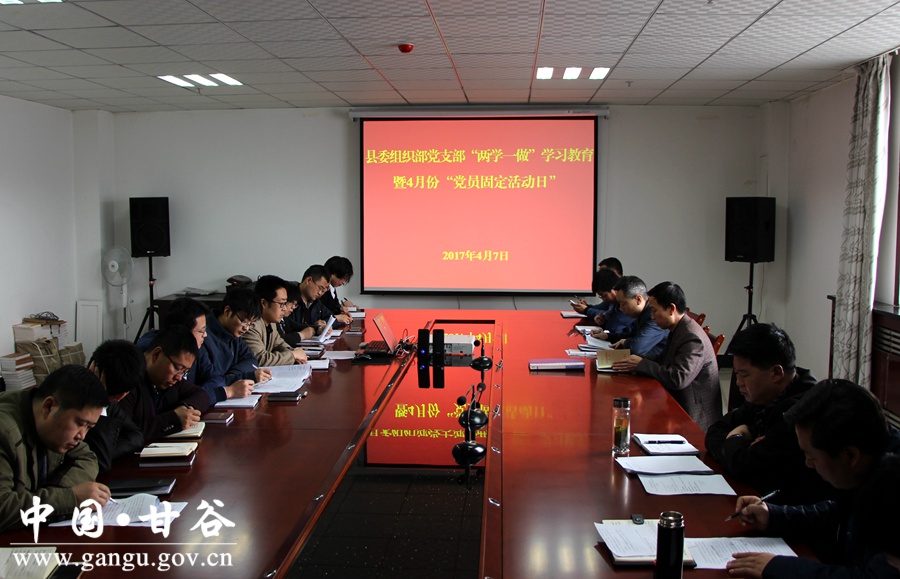 4月7日,县委组织部党支部开展“两学一做”学习教育“党员固定活动日”活动,组织全体党员集体学习中共中央办公厅《关于推进“两学一做”学习教育常态化制度化的意见》,观看发展党员工作片《入党》。