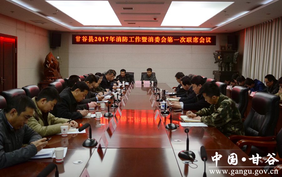 3月14日,甘谷县召开2017年消防工作暨消防安全委员会第一次联席会议,传达贯彻省市消防工作会议精神,回顾总结2016年工作,分析当前消防工作形势,安排部署今年重点工作任务。县委常委、常务副县长孟晓龙出席会议并讲话,各乡镇、县消防安全委员会成员单位负责人参加会议。