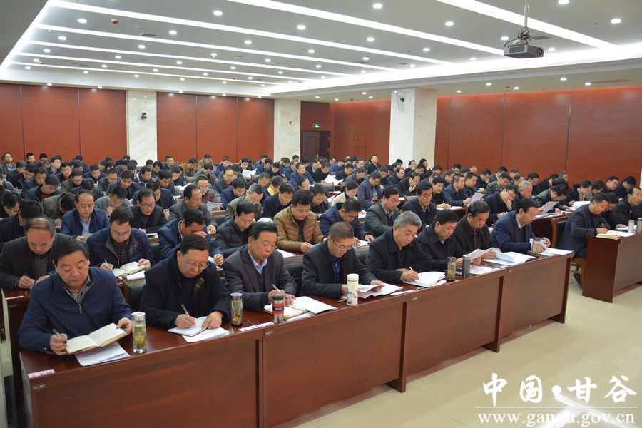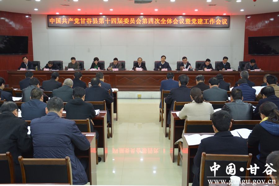 3月16日,中国共产党甘谷县第十四届委员会第四次全体会议暨党建工作会议召开。会议贯彻落实中央和省、市委关于全面从严管党治党一系列新部署、新要求,回顾总结了2016年度党建工作,分析研判了全县党建工作面临的新情况、新问题,安排部署了当前和今后一段时期的党建、宣传、统战工作重点任务,进一步动员全县各级党组织和广大党员干部凝心聚力,攻坚克难,谋深抓实各项工作,为打赢脱贫攻坚战、全面建成小康社会提供坚强保证。 县委委员、候补委员;不是县委委员的县四大组织领导干部;不是县委委员的县直单位党组织负责人,乡镇党委副书记、党建办主任及驻县省属单位、垂管单位党组织负责人共计150余人参加会议。 会上,县委书记贾忠慧代表县委常委会作了题为《聚焦主责主业 强化担当作为 全面提升新形势下党建工作科学化水平》的工作报告,并与各乡镇、各部门签订了党建责任书。县委常委、组织部长冯建新安排部署了2017年度组织工作;县委常委、宣传部长张庆元安排部署了2017年度宣传思想工作;县委常委、统战部长王刚安排部署了2017年度统战工作。会议还传达了省、市委组织、宣传思想工作会议精神。