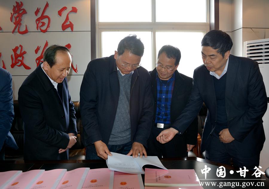 3月16日,省人大常委会研究室主任明连成、副主任林玉霞,《人大研究》杂志社主编谢蒲定一行来甘谷县调研县人大常委会开展监督工作情况。市人大常委会副主任张克强,县委书记贾忠慧,县人大常委会主任令建民、副主任刘永仁陪同。