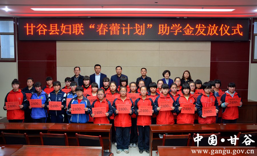 3月3日,在第107个“三八”国际劳动妇女节即将来临之际,甘谷县妇联举行“春蕾计划”助学金发放仪式。县人大常委会副主任王金生,副县长牛武军,县政协副主席田小龙出席仪式;县妇联、县教体局有关负责人,受助学生及家长参加仪式。 仪式上,牛武军作了讲话;与会领导向受助学生发放了助学金;县政府妇儿工委办负责人宣读了救助学生名单;受助学生代表作了发言。