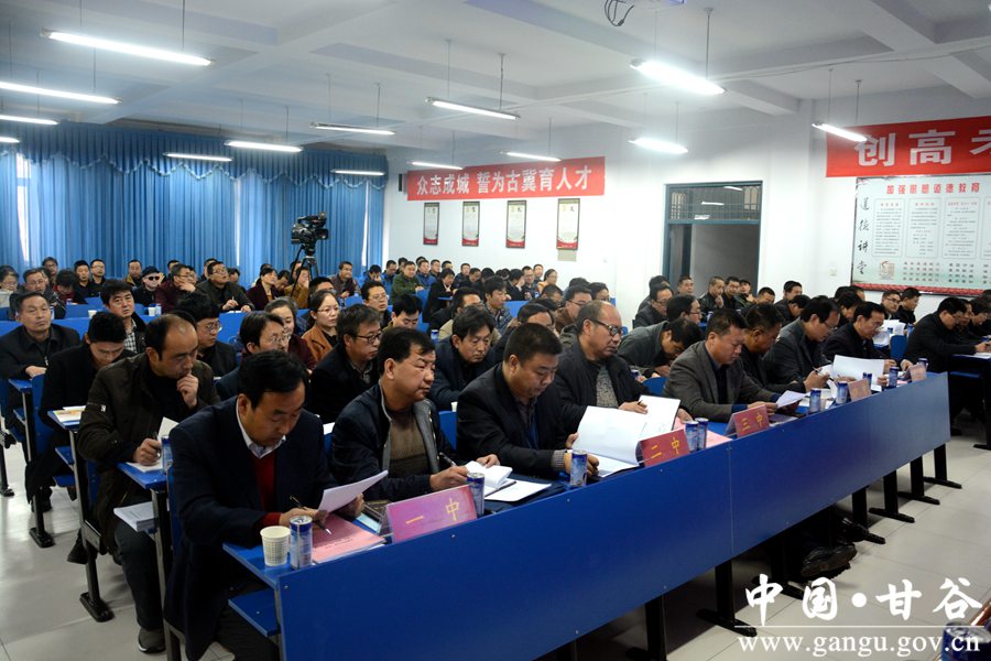 3月5日,甘谷县2017年高考备考研讨会在甘谷二中召开,总结分析前段全县高考备考工作,交流研究备考策略,安排部署下段重点工作任务。县委常委、宣传部长张庆元,副县长牛武军出席会议;县教体局班子成员,各高中校长、年级组长、高三年级全体科任教师参加会议。 会上,张庆元、牛武军分别做了讲话;甘谷一中、甘谷二中、甘谷三中、甘谷四中、甘谷六中、像山中学、育才中学及县职校负责人分别汇报了2017年高考备考复习工作情况;县教育局负责人对第一次联考情况进行了分析总结。