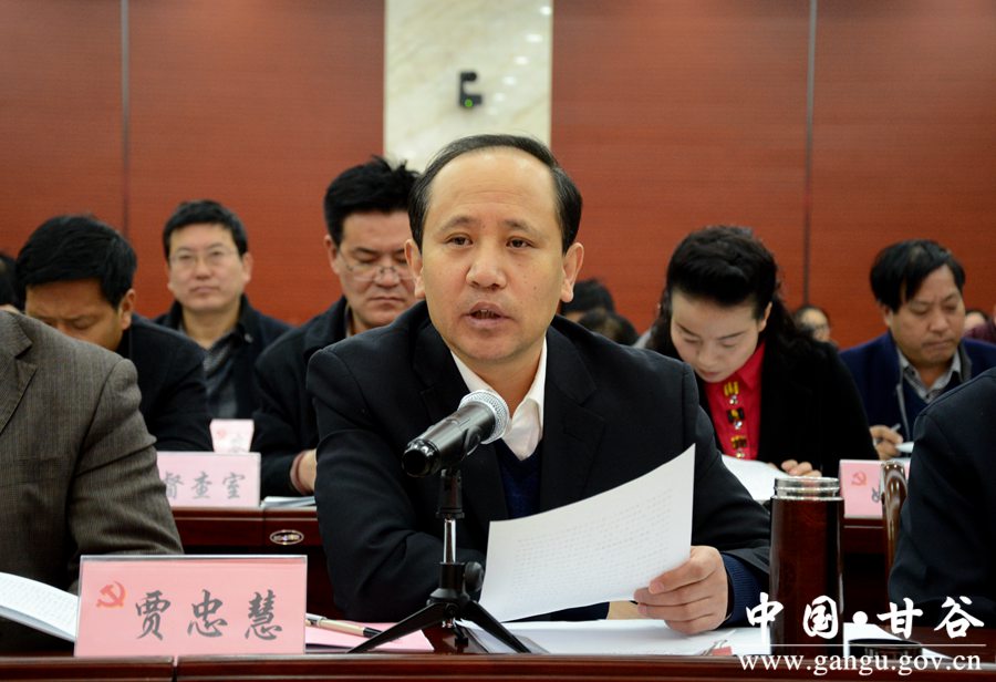 (县委书记贾忠慧汇报全县经济社会发展和精准扶贫精准脱贫工作情况并作个人述职)
