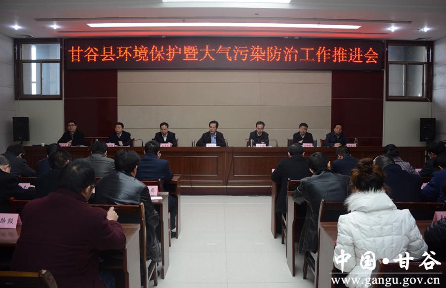 2月24日,甘谷县召开环境保护暨大气污染防治工作推进会,贯彻落实中央和省市环保工作部署要求,对当前大气污染防治和环境突出问题整改进行再安排、再强调、再部署,动员各责任单位进一步认清当前形势,强化工作措施,狠抓任务落实,推动县域环境质量持续稳定改善。县委副书记、县长申君明,县委常委、政法委书记冯全敬,县委常委、副县长王志高,县人大常委会副主任刘仰贤,副县长马福胜,县政协副主席郑建子出席会议。各乡镇、相关部门、相关企业负责人参加会议。 会上,申君明全面安排部署了2017年全县环境保护暨大气污染防治工作;马福胜传达了全市大气污染防治工作会议精神,并代表县政府与各乡镇、相关部门签订了环保目标责任书;县环保局负责人通报了全县大气环境质量状况。