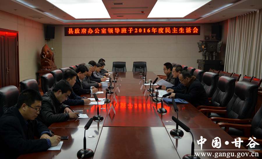 2月24日,甘谷县人民政府办公室召开领导班子2016年度民主生活会。县政府办班子成员以学习贯彻党的十八届六中全会精神为主题,围绕“两学一做”学习教育,对照《准则》《条例》,分别结合各自思想和工作实际,深入查摆问题,检视差距不足,深刻剖析根源,开展批评和自我批评,着力提高发现和解决自身问题的能力,增强班子凝聚力和战斗力。