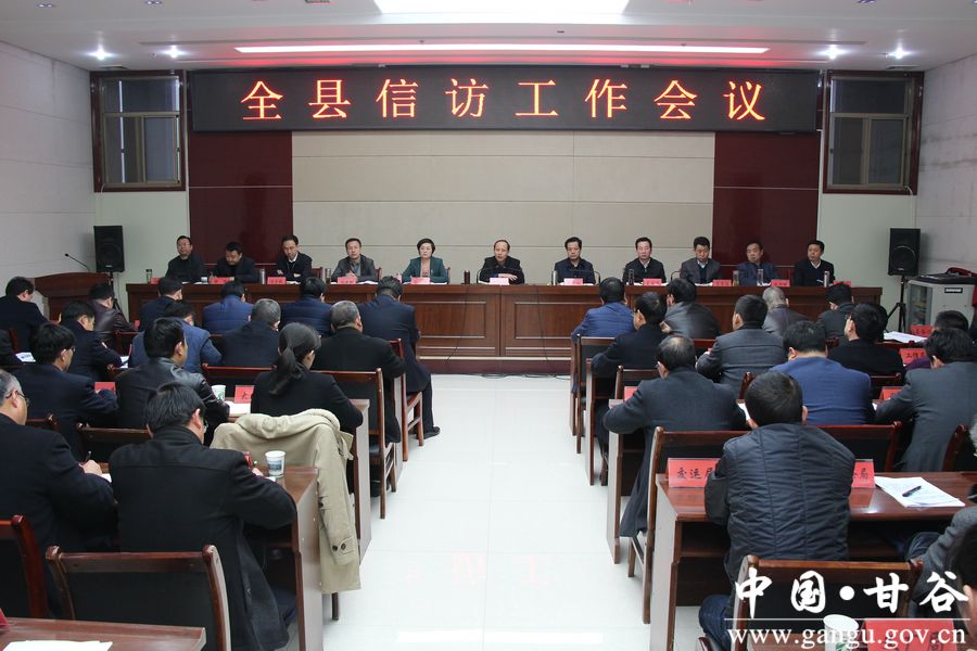 2月20日,甘谷县召开信访工作会议,传达贯彻全市信访工作会议精神,分析研判当前信访形势,安排部署2017年信访工作重点任务。县委书记贾忠慧,县委副书记、县长申君明,县委常委、纪委书记谢辉,县委常委、常务副县长孟晓龙,县委常委、组织部长冯建新,县委常委、大像山镇党委书记葛彦迪,县委常委、政法委书记冯全敬,县人大常委会副主任谢兴明,副县长杨宏、马福胜,县政协副主席陈旭出席会议,各乡镇党委书记、乡镇长及县信访联席会议成员单位负责人共计80多人参加会议。 会上,贾忠慧、申君明分别作了讲话;孟晓龙通报了2016年信访工作开展情况,安排部署了2017年信访工作重点任务,并代表县委、县政府与信访工作联席会议成员单位签订了《2017年信访工作目标管理责任书》;冯全敬宣读了对进京非正常上访问题突出乡镇进行责任追究的通报和《关于进一步落实重点信访案件包案责任制的通知》;大像山镇、新兴镇、六峰镇、金山镇、八里湾乡等乡镇负责人分别作了表态发言。