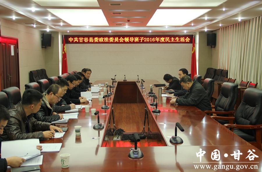 2月20日,甘谷县委政法委召开2016年度领导班子民主生活会。县委常委、政法委书记冯全敬主持会议并讲话;政法委班子成员参加会议;县纪委、县委组织部有关负责人应邀指导会议。 会上,政法委有关负责人代表领导班子作了对照检查,并提出了具体整改措施;班子成员联系各自思想、工作、生活实际,分别进行了对照检查,开展了批评与自我批评。