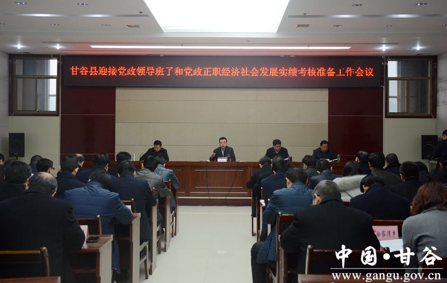 2月10日,甘谷县召开迎接贫困县党政领导班子及党政正职经济社会发展实绩考核准备工作会议,全面安排部署考核准备各项工作。县委副书记任佩光,县人大常委会副主任颉明军,副县长杨宏,县政协副主席郑建子出席会议;各乡镇、相关部门单位负责人参加会议。