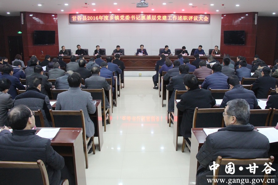 1月22日,甘谷县召开2016年度乡镇党委书记抓基层党建工作述职评议大会,对各乡镇党委书记、县直党(工)委书记抓基层党建工作情况进行述职评议。 市委组织部副部长丁晓来,市委组织部公务员管理科科长张育明出席指导会议;县委副书记、县长申君明,县委副书记任佩光,县委常委、纪委书记谢辉,县委常委、组织部长冯建新,县委常委、宣传部长张庆元,县委常委、统战部长王刚,县委常委、副县长王志高出席会议;各乡镇党委书记、副书记、党建办主任,县直单位主要负责人和县直机关党(工)委副书记及部分基层“两代表一委员”、党员干部代表共170余人参加会议。 会上,各乡镇党委书记就履行党建工作第一责任人责任、抓基层党建工作情况、存在不足问题和下段工作打算等进行了述职;申君明等县领导结合平时了解掌握和述职情况分别进行了点评;丁晓来作了点评讲话;会议还对各乡镇党委书记、县直机关党(工)委书记履行抓基层党建工作职责情况进行了评议。