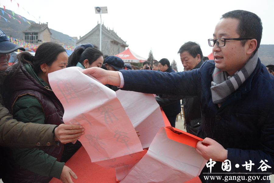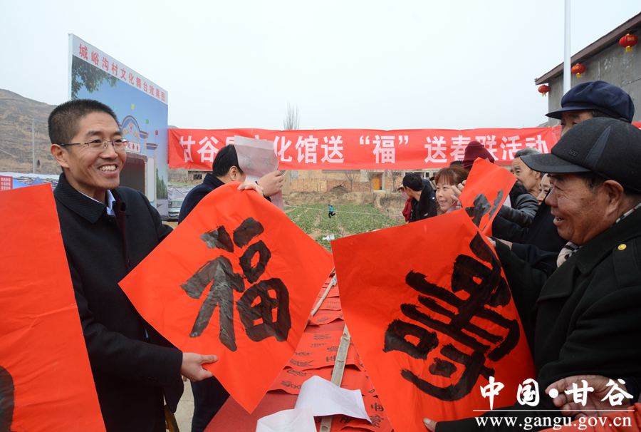 县文广局负责人说,“春节是中华民族祈福迎祥的传统节日,贴“福”字、贴春联更是传统文化的传承与延续。我们举办送书、送‘福’、送春联活动,目的是让更多群众感受传统文化的魅力,把新春的美好祝福送到群众家中,提前营造文明祥和、欢乐喜庆的节日氛围。”