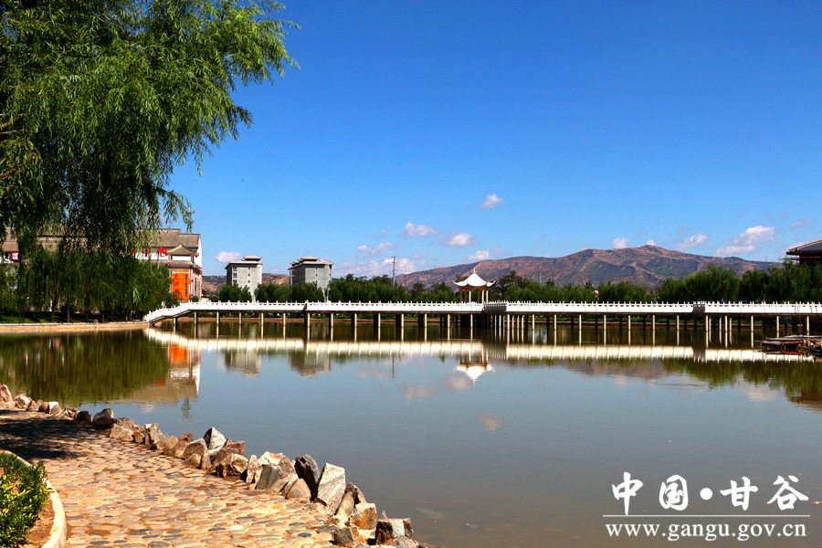 赞叹甘谷,名胜古迹,人文景观,岂是如此能详叙,亦复平凡能言知,然冀有八景,最为壮观。登天门,望春晓,临海潭,赏映月,南岭清波泛龙鳞,渭川秋烟雾朦胧,灵凤耸翠多珍宝,水屿峡南满天锦。信愿行拜悬崖大像,静心灵听石鼓擎雪,沐夕阳观朱圉晚霞。此景可咏!此情可颂! 大美甘谷, 辉煌璀璨 ,已过斯日,全然史载,唯看今朝,众志成城,继往开来,承上启下,续先祖之慧根,扎基础于后代,再创昔日伟业,共谱盛世华章。