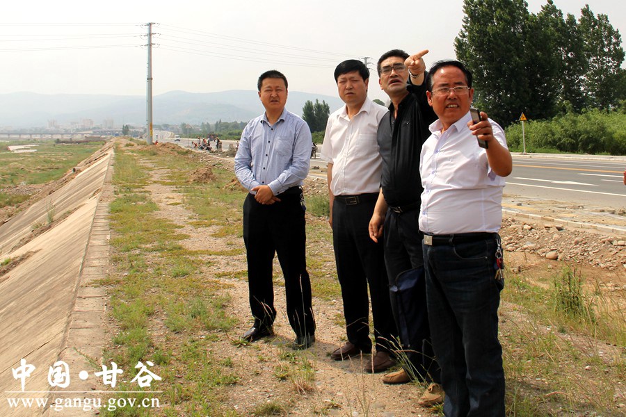 6月7日市政府督查室副主任张世钧带领督查组深入甘谷县,督查河道整治工作。副县长杨宏及县水务局负责人一行陪同督查。