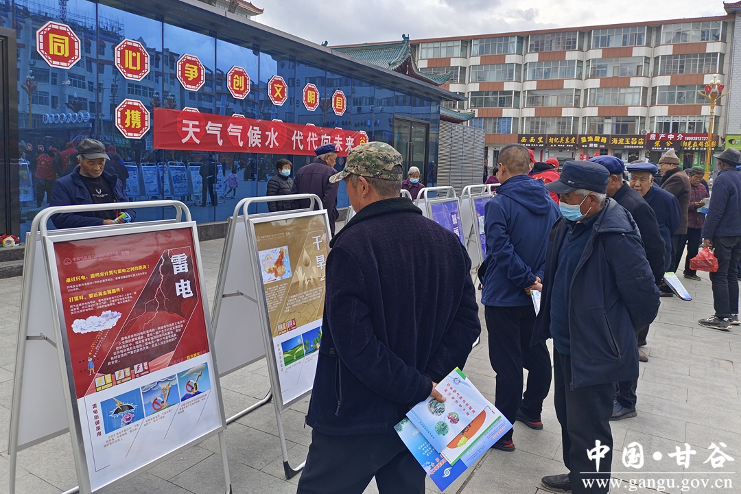 3月23日,时值第六十三个世界气象日,甘谷县气象局联合大像山镇富强社区围绕今年世界气象日主题“天气气候水 代代向未来”,组织干部职工在甘谷县大十字广场开展世界气象日科普宣传活动。