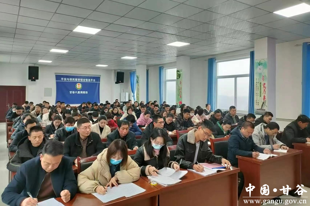 为深入学习宣传贯彻党的二十大精神,全面贯彻落实省、市、县“三抓三促”行动部署要求,3月23日,八里湾镇新时代文明实践所“抓学习促提升”知识大讲堂(第一期)正式开讲。会议学习了党的二十大精神和省市县关于“三抓三促”行动动员部署会议及相关文件精神。会议由镇党委副书记、镇长王海鹏同志主持,全体镇干部、各村党支部书记、各村文书、部分志愿者共计120余人参加。