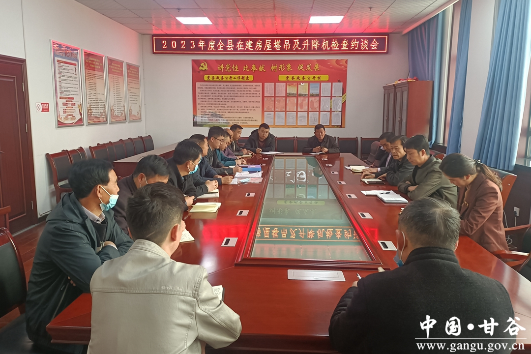 近日,甘谷县住建局召开2023年度全县在建房屋塔吊及升降机检查约谈会议,局机关安全生产负责同志、局属有关单位负责人,阳光锦绣城、新城苑、恒通御府、水岸新都等在建项目负责人,塔吊升降机检测及租赁单位,项目监理单位等共计20余人参加会议。
