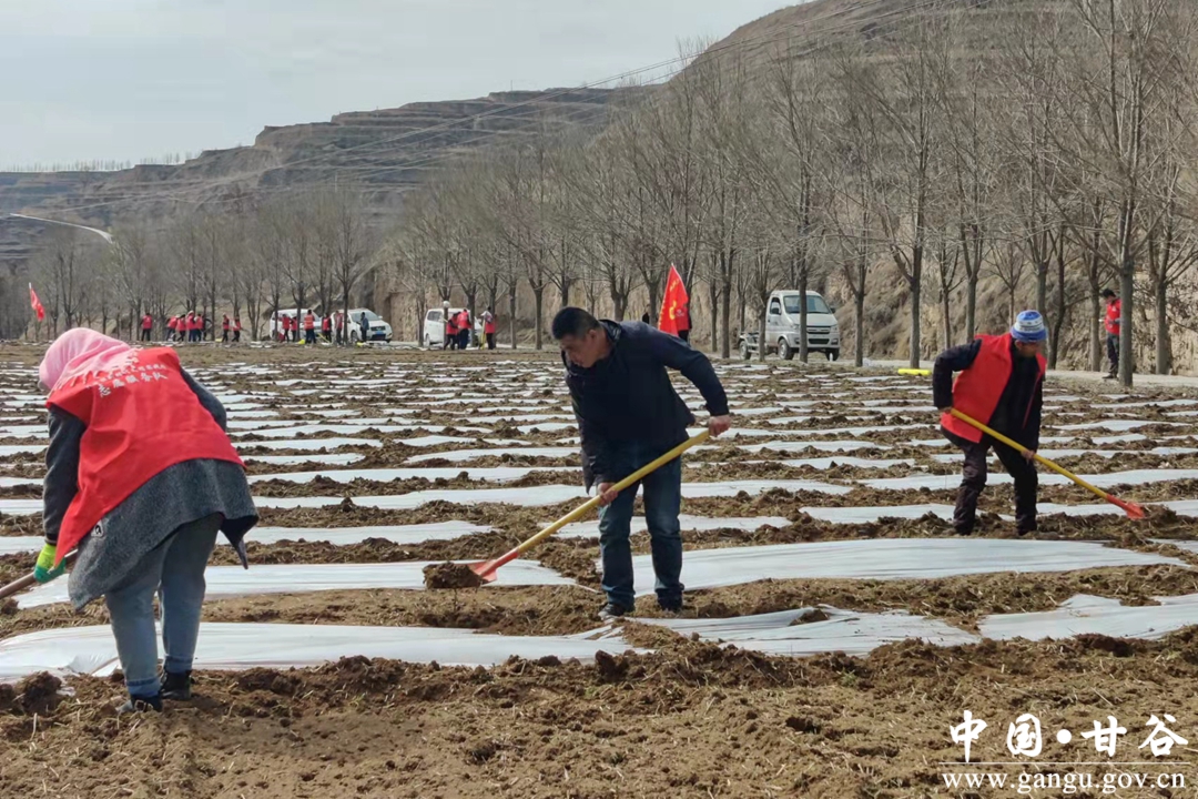 人勤春来早,农事催人忙。当前正值春耕生产关键时期,在大庄镇各村田间地头随处可见“红马甲”扬锹翻土、整地覆膜的身影,党员干部“化身”志愿者,深入田野乡间,带动、帮助农户抢抓农时,有效开展春耕生产工作,掀起了春耕覆膜的新热潮。