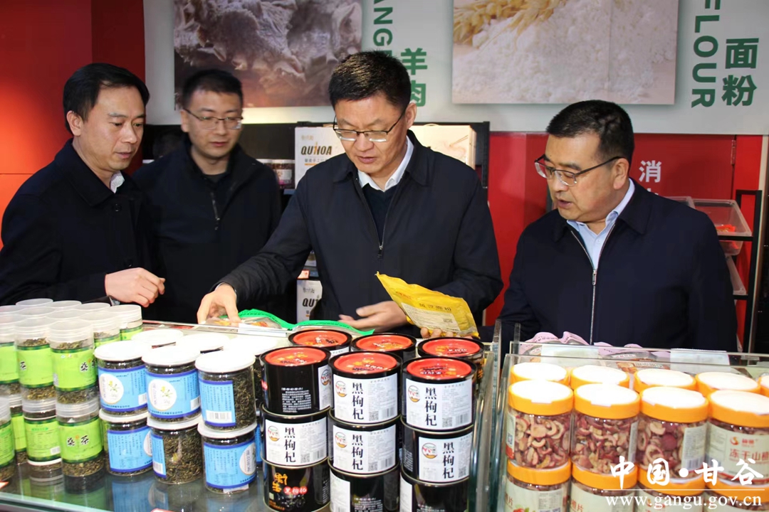 在天津市甘肃商会,孙忠平一行参观了商会“津甘协作发展基地”、“甘味农产品天津展销中心”和商会工作展示中心,听取商会会员企业汇报介绍,宣传推介甘谷发展前景和投资环境。