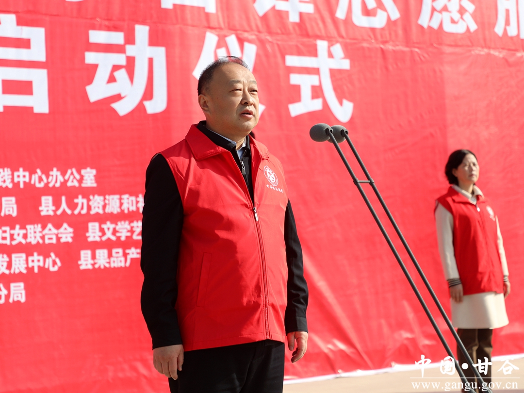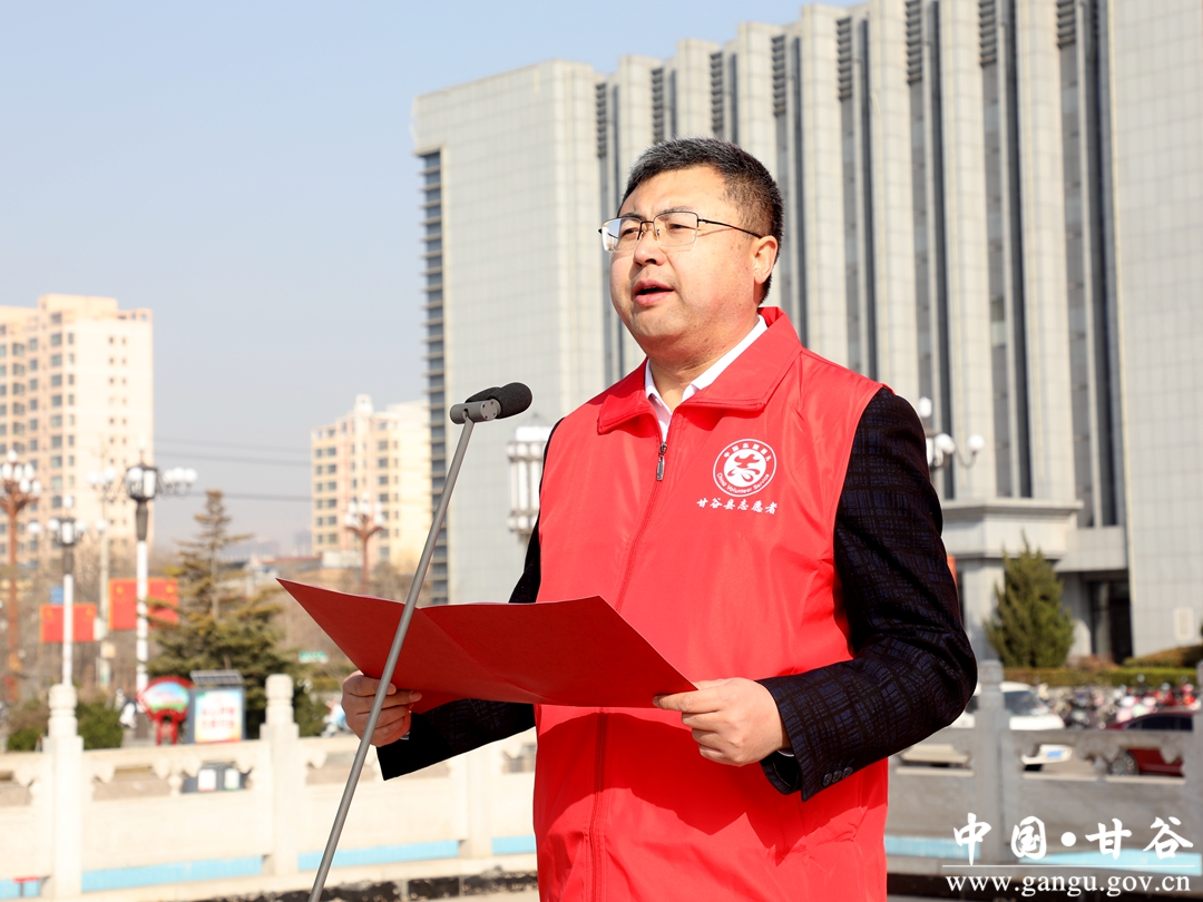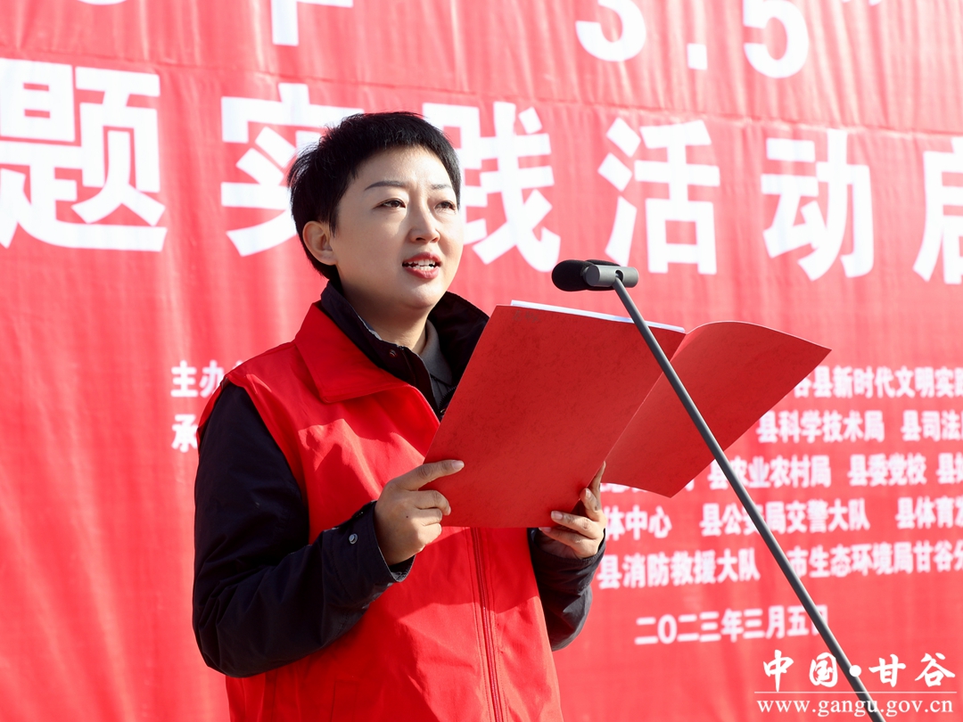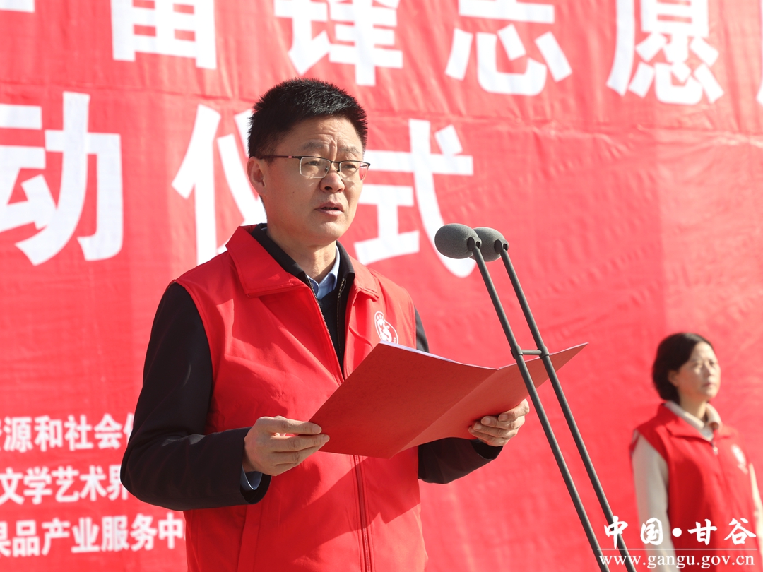 (县委书记、县新时代文明实践中心主任吴健宣布“践行二十大·志愿我先行”甘谷县2023年学雷锋志愿服务主题实践活动启动)