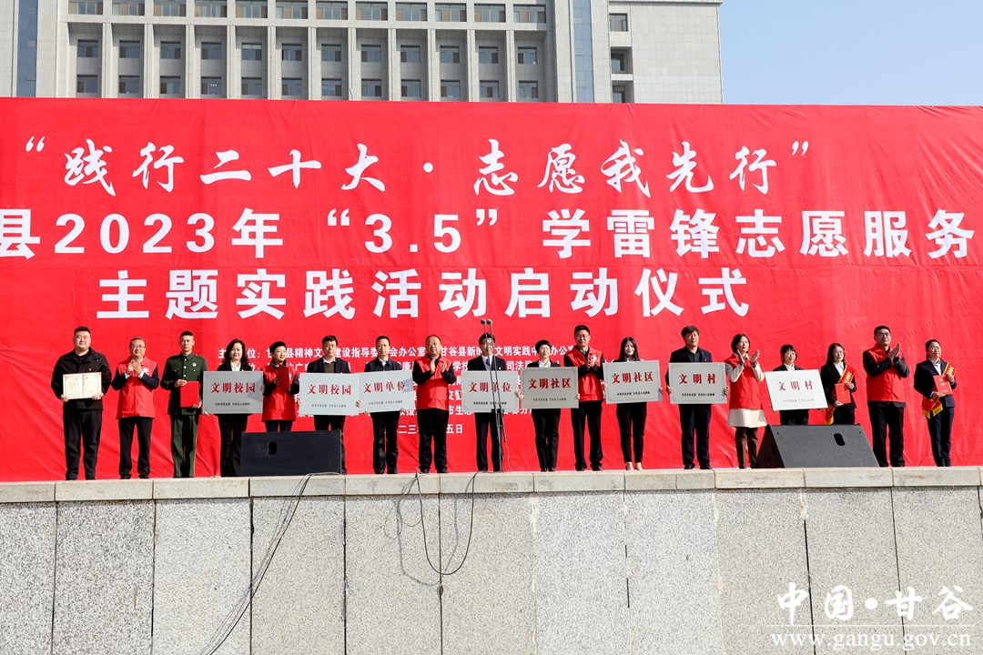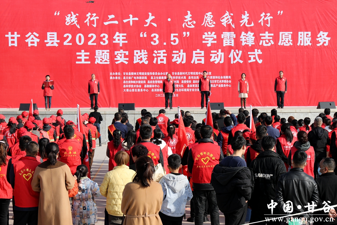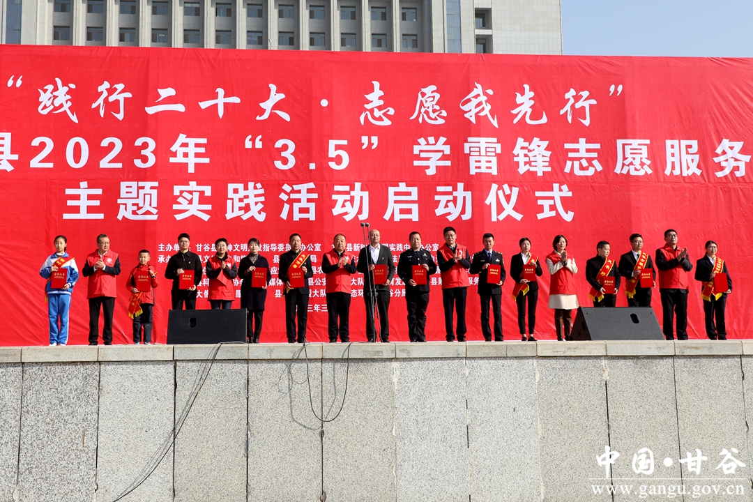 3月5日,“践行二十大·志愿我先行”甘谷县2023年学雷锋志愿服务主题实践活动启动仪式在冀城广场隆重举行。县委书记、县新时代文明实践中心主任吴健宣布活动启动;县委副书记、县长孙忠平致辞;县委常委、宣传部部长、新时代文明实践中心办公室主任范慧主持启动仪式;副县长刘强宣读表彰决定;县人大常委会副主任杨晓涛、县政协副主席李文定出席活动。