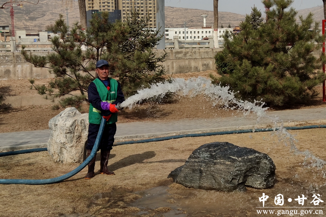 甘谷县园林所副所长刘明说,目前园林所共投入人力358人次、浇灌车辆132台次开展绿化作业,现已浇灌绿化区域21万多平,为春季苗木的生长发育打下了扎实的基础。