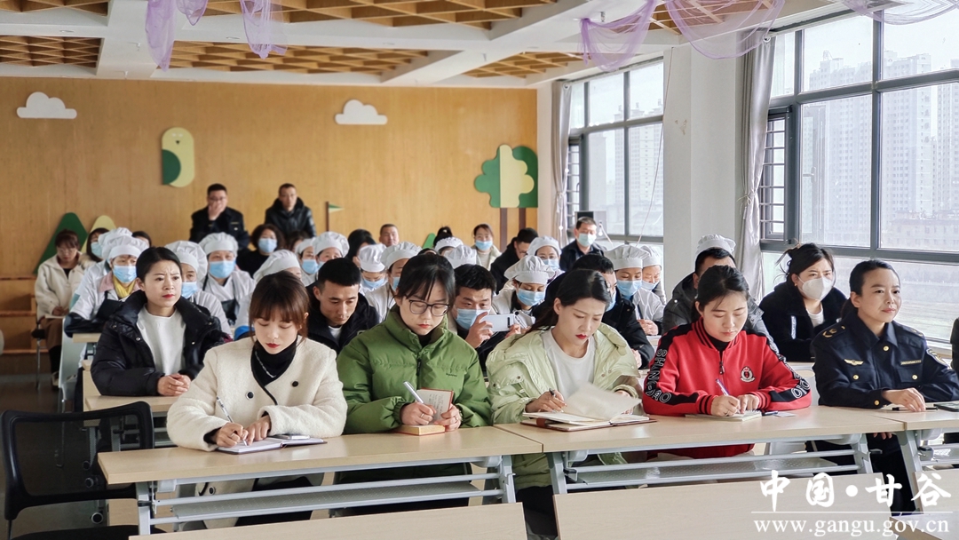 为扎实开展“三抓三促”行动,全力推进食品安全“两个责任”落实,切实做好学校幼儿园及周边食品安全监管,有效防范校园食品安全风险,近日,甘谷县市场监督管理局组织开展了春季学校食堂从业人员岗前培训暨食品安全进校园宣讲活动。11所学校和9所幼儿园的分管食品校(园)长、责任教师、后厨从业人员以及辖区市场监管所人员共计100余人参加了培训。
