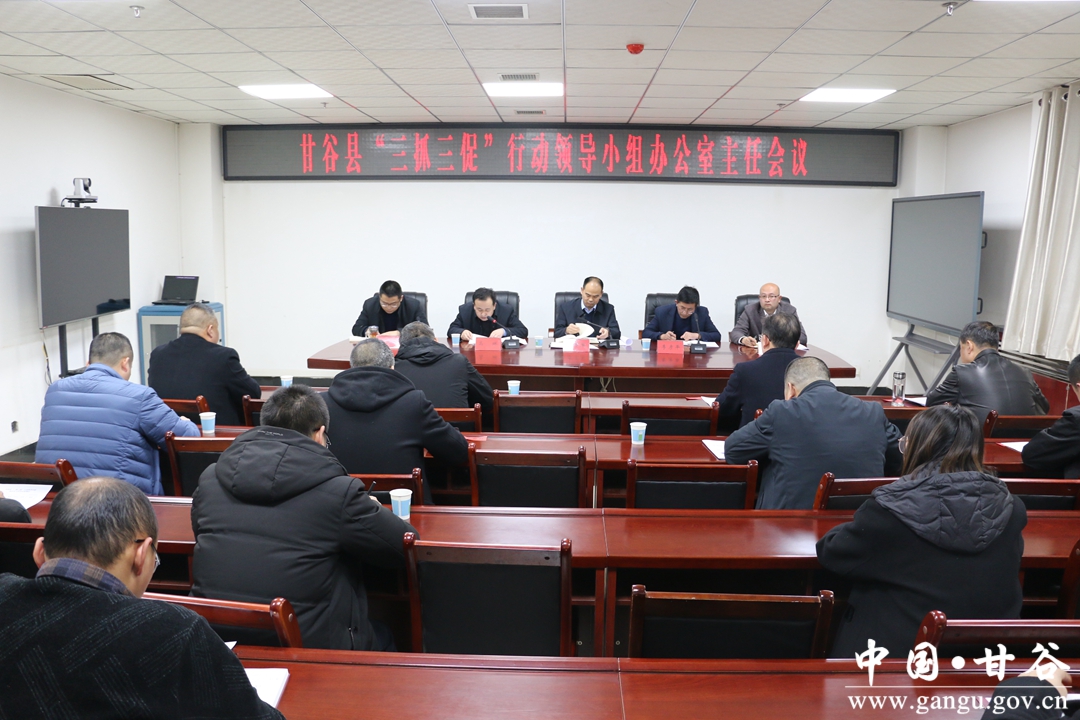 会议传达学习省市“三抓三促”行动领导小组办公室主任会议精神和《甘谷县“抓学习促提升抓执行促落实抓效能促发展”行动实施方案》,解读了《甘谷县“三抓三促”行动领导小组办公室组织架构及运行机制》,综合组、宣传组、考评组、督查组等相关部门负责同志结合各自工作实际,就贯彻落实好“三抓三促”行动作了表态发言。