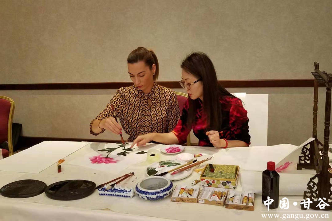 这位女画家,就是在异国积极宣传中国文化的甘谷女儿王保康。在活动现场,能得到王保康画作的斯洛伐克人,脸上洋溢着欢喜的笑容,不停地向她表达谢意;还有对中国文化特别感兴趣的斯洛伐克人,也欣然拿起毛笔,在王保康的指导下落笔挥毫,然后开心地拿着自己人生中的第一幅中国画作品,和王保康合影留念。