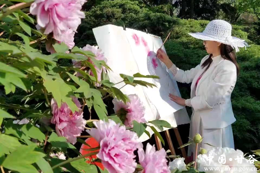 ◥活动现场,一位身着旗袍、优雅微笑着的中国女画家,用毛笔蘸上不同的颜料,在宣纸上挥毫晕染,不一会儿,纸上便诞生了一幅富贵吉祥的中国牡丹画。