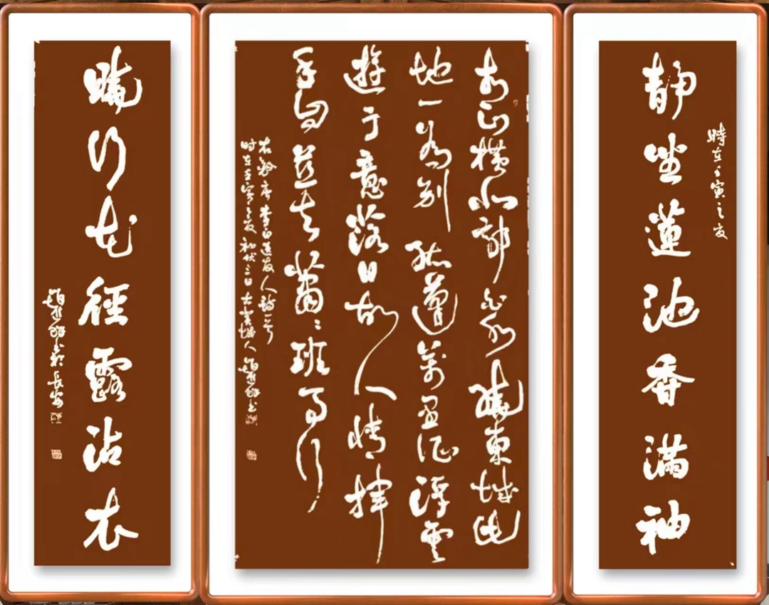 先生的书法作品,是他六十年心血的结晶,六十年磨砺的精华,六十年人生的体悟。打开卷轴,一股清新之气扑面而来,无论行云流水的草书,还是端庄典雅的篆书,都呈现出一种正大气象,或奇峭险绝、或平正雍容;或刚健婀娜、或雄浑宽博;或遒润妍媚,或劲挺秀逸……每一根线条都张扬着生命的活力、军人的气质,每一个汉字,都沉淀着心灵的感悟、传统的脉动,每一幅作品,都折射着高华的品格、高尚的情操。古人云:书,如也,如其学,如其才,如其志。总之,曰如其人而已。又云:书虽一艺,与人品相关。资禀清而襟度旷,心术正而气骨刚,胸盈卷轴,笔自文秀。古人言之,先生行之,吾人赏之。